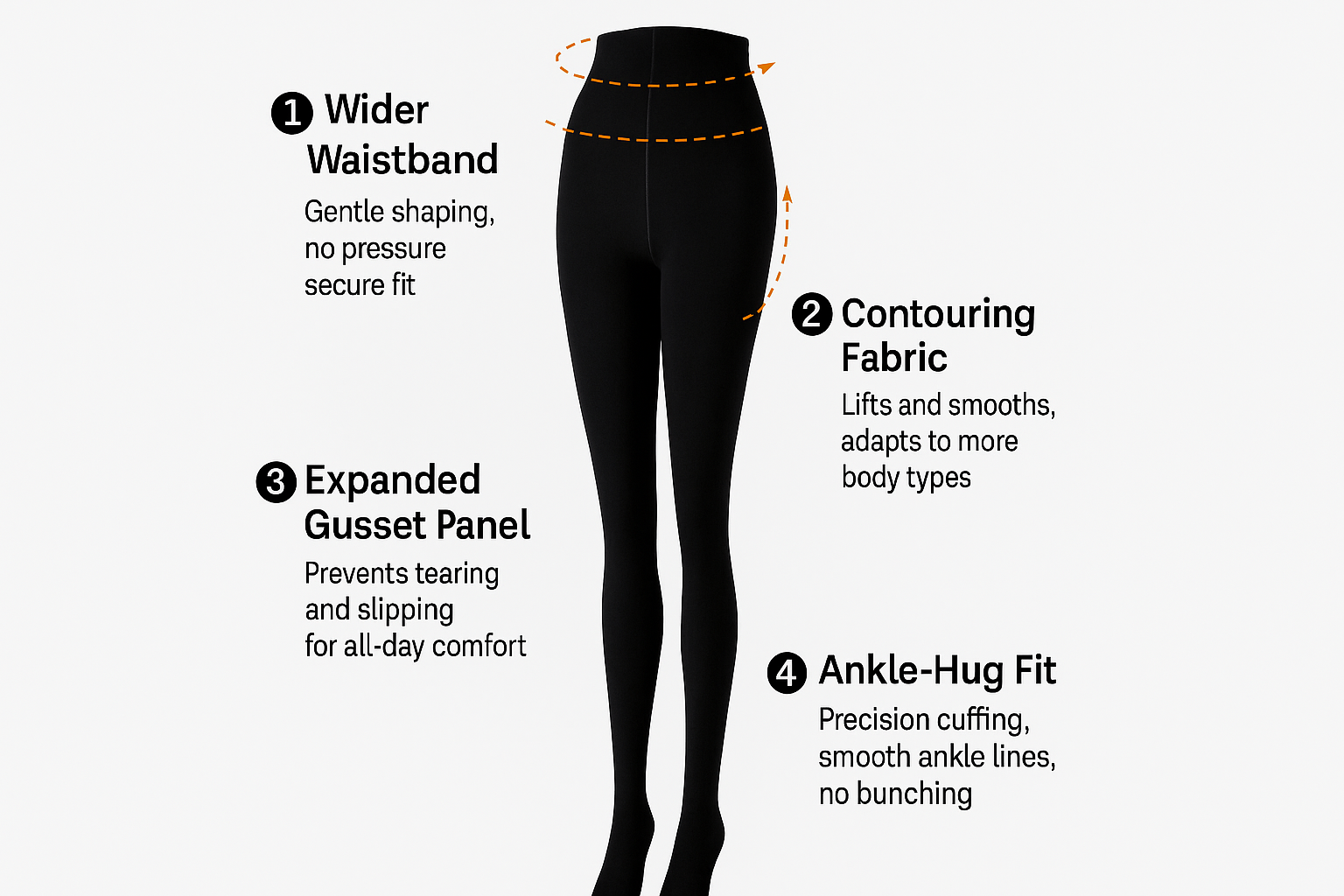 • A smooth, widened waistband that feels like a gentle hug — no rolling, no slipping, just effortless hold all day.