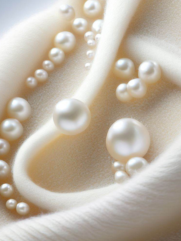 A fine cashmere-blend knit infused with real pearl for a natural glow, anti-static comfort, and a gentle touch on sensitive skin.