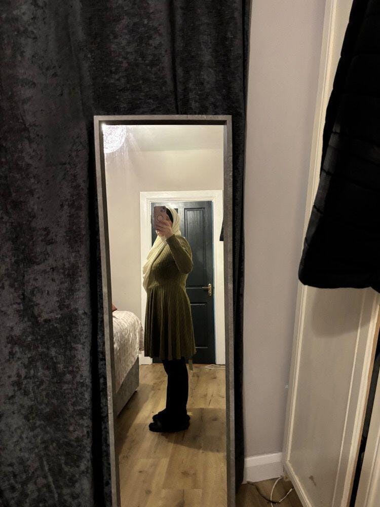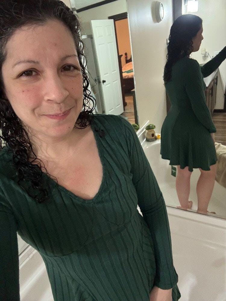 Ribbed Knit V Neck Long Sleeve Flare Casual Dress
