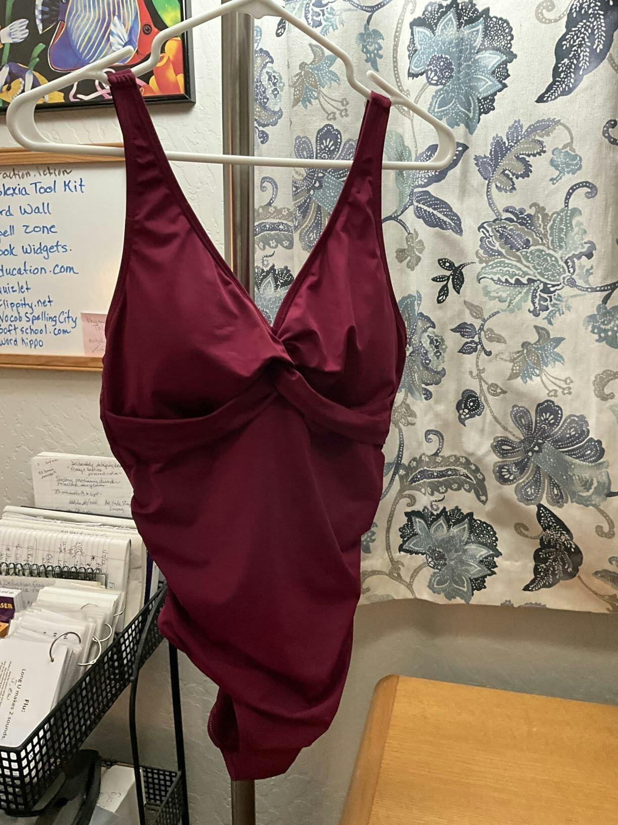 I’m impressed with this suit. I wound up a size down, but I have a large bust so it is a bit less coverage but nothing crazy. The fit is perfect and the fabric is very supportive. The straps are adjustable and secure. I like the lower back. The ruching really slims your figure and there is bust support enough to feel comfortable and confident. I usually like more moderate coverage on the bottom but this is really fine. I think the pattern is nice and different for what I was lacking in my swim wardrobe, if you will lol! I definitely would consider buying another one maybe in a dark solid, same size and will check out other options from this brand